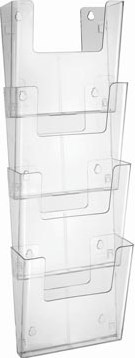 Wandfolderhouder van glashelder polystyreen.