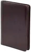De conferentiemap heeft ruimte om een notitieblok in te steken en een ringband in het midden van de schrijfmap heeft een ringmachaniek van 25mm. De lederen map is af te sluiten met een rits. p>