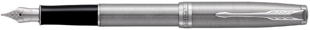 De vulpen is gecomplementeerd met palladium afwerkingen en een edelstalen penpunt