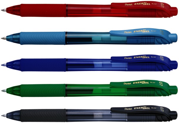 De Pentel Energel BL107 met drukknopmechanisme schrijft verrassend soepel, droogt bijzonder snel en vlekt niet