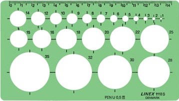 Sjabloon Linex 1118S 22 cirkels 1-35mm met inktvoetjes