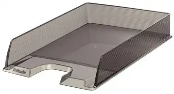Het Esselte Brievenbakje Vivida in rookglas is een modern en stijlvol brievenbakje dat perfect is voor jouw bureau. Dit stevige polystyrene bakje biedt niet alleen een grotere stabiliteit, maar is ook verticaal of trapsgewijs stapelbaar in drie posities. Dankzij de ruimte aan de zijkanten kun je eenvoudig etiketten plaatsen, zodat je altijd overzicht houdt. De afgeronde uitsnede aan de voorzijde zorgt voor een gemakkelijke toegang tot je documenten. Met een capaciteit van 370 blad is dit brievenbakje ideaal voor A4-formaat wanneer gestapeld. Of je nu thuis of op kantoor werkt, dit brievenbakje is een praktische en stijlvolle oplossing voor het organiseren van je papieren.