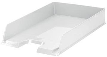 Het Esselte Brievenbakje Vivida in wit is een modern en stijlvol brievenbakje dat perfect is voor op jouw bureau. Dankzij de unieke gelijnde textuur en stevige polystyrene constructie biedt dit brievenbakje een grotere stabiliteit. Het is ontworpen om verticaal of trapsgewijs gestapeld te worden in drie posities, waardoor je altijd de juiste indeling kunt creëren voor jouw documenten. Met ruimte aan de zijkanten voor etiketten en een handige afgeronde uitsnede aan de voorzijde, heb je eenvoudig toegang tot al je belangrijke papieren. Dit brievenbakje heeft een capaciteit van 370 blad en is ideaal voor A4 formaat wanneer gestapeld. Of je nu thuis werkt of op kantoor, dit brievenbakje is een must-have voor een georganiseerde werkplek.