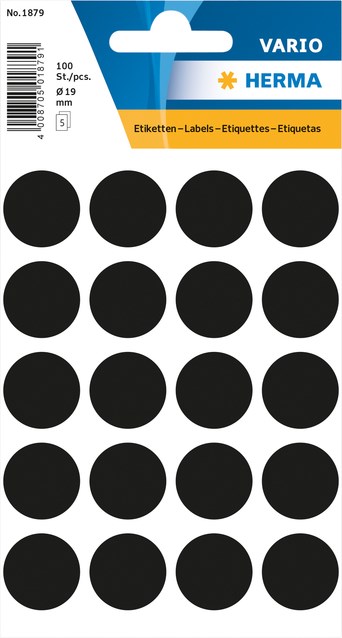 Herma etiketten 1879 rond 19mm zwart 100stuks