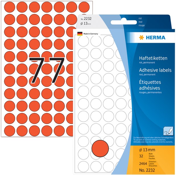 Herma etiketten 2232 rond 13Mm rood 2464stuks