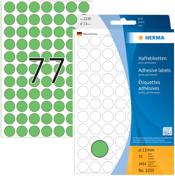 Herma etiketten 2235 rond 13Mm groen 2464stuks