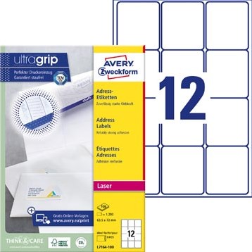 Avery etiketten L7164-100 63.5x72mm wit 1200stuks