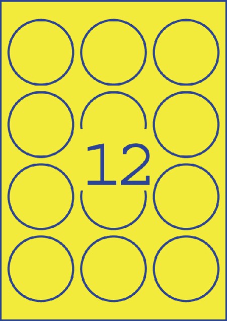 Avery etiketten L7670-25 63.5mm rond neon geel 300stuks