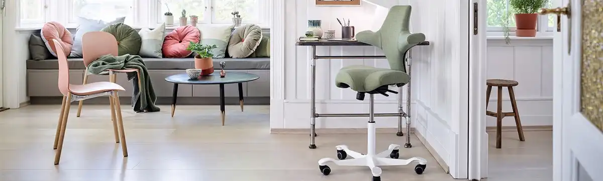 De Capisco is een uniek en tijdloos designicoon. Al meer dan 20 jaar is deze HÅG zadelstoel een bijzondere verschijning in het kantoor. De revolutionaire zadelzitting en de unieke vormen zijn geïnspireerd op de houding van een ruiter. Dat biedt u eindeloze mogelijkheden om te zitten of om half rechtop te staan. Hierdoor is de Capisco een goede stoel wanneer u gebruik maakt van een zit sta bureau. Door de unieke vorm van de zitting kunt u op diverse manieren zitten op de stoel, recht voorruit, schuin of u draait de stoel om zodat u met uw borst op de rugleuning leunt. Deze laatste zitpositie wordt vaak gebruikt door mensen die secuur werk doen zoals een ringmaker. De stoel geeft u meer steun waardoor u stabieler zit. Met het Balanced Movement Mechanism blijft u in beweging en voorkomt u lichamelijke klachten.