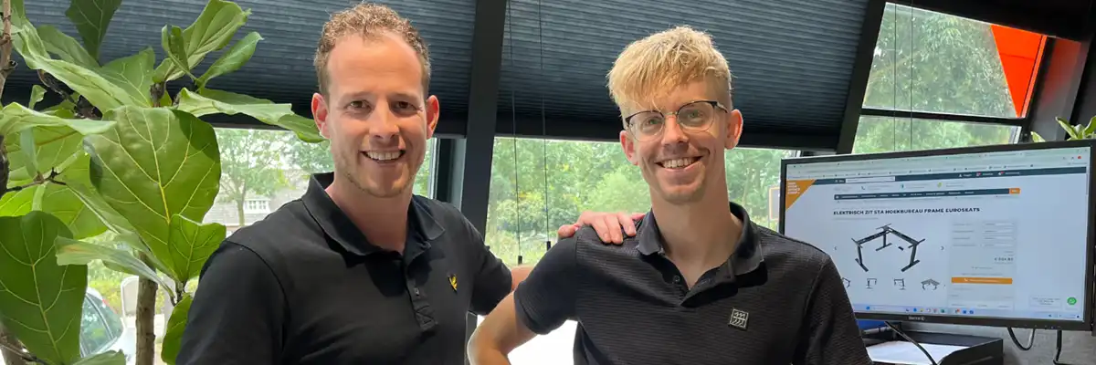Teun werkt inmiddels zo’n twee maanden bij One Stop Office Shop als commercieel medewerker binnendienst. Een ware spin in het web, die naast het klantencontact en het maken van offertes ook verantwoordelijk is voor een deel van de contentcreatie. Daarnaast gaat hij regelmatig mee op pad om meubels te monteren en klanten te bezoeken. Met een scherp oog voor detail zorgt hij voor het puntje op de i. "Het is een mooie mix", zegt Teun. "De combinatie van marketing en klantencontact zorgt ervoor dat elke dag anders is. Soms ben ik helemaal verdiept in het uitwerken van een grote offerte of video, en andere keren sta ik op locatie bij een klant. Dat maakt het werk super afwisselend en leuk!"