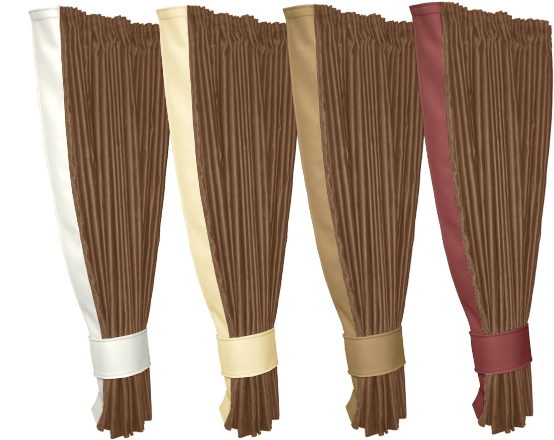 - Seitenvorhänge mit Lederriemen (7 cm)