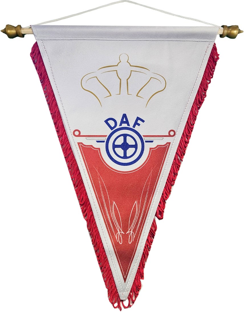 Wimpel DAF. Beidseitiger Transferdruck mit rot Rüsche.