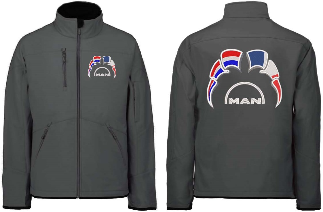 Softshelljacke MAN Emblem mit Wimpel Niederlande - Frankreich