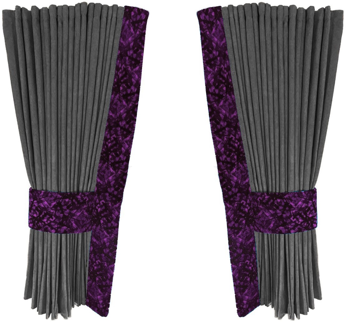 Graue 0027 Seitenvorhänge mit lila Plüsch