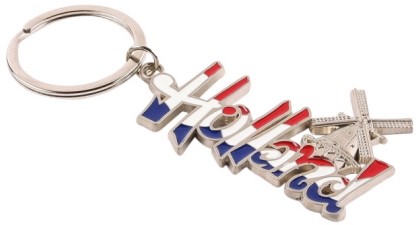 Rot-Weiß-Blauer Schlüsselanhänger mit Text Holland und Windmühle.