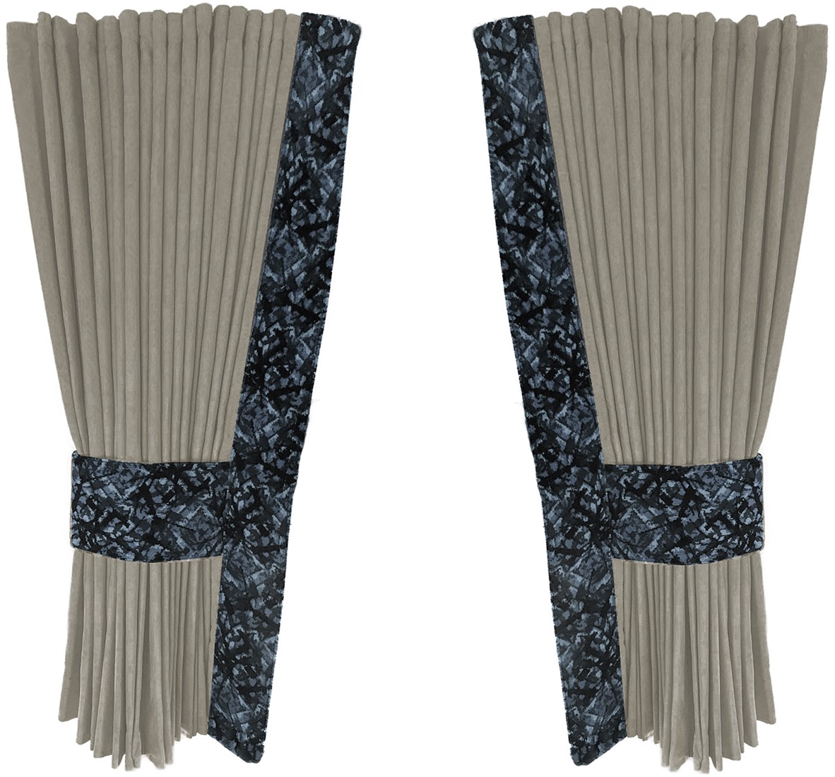 Diese Seitenvorhänge sind 100 % verdunkelnd und aus doppeltem Alcantara-Stoff mit Plüschkante handgefertigt.