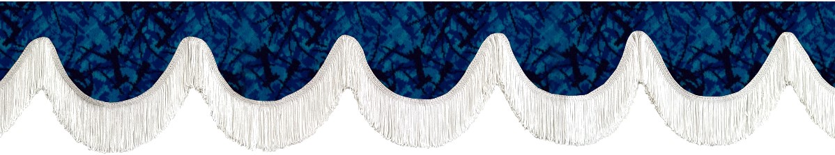 Bordüre aus blauem Plüsch mit Fransen