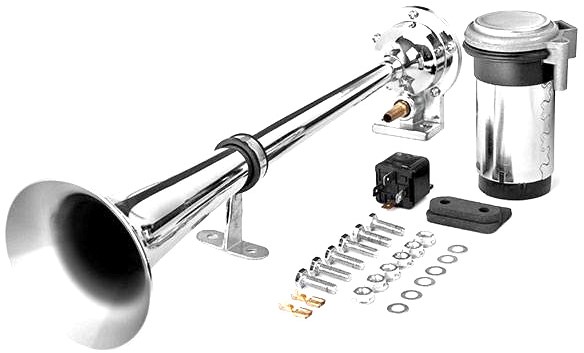 Klein, aber leistungsstark, so lässt sich dieses verchromte Drucklufthorn am besten beschreiben.