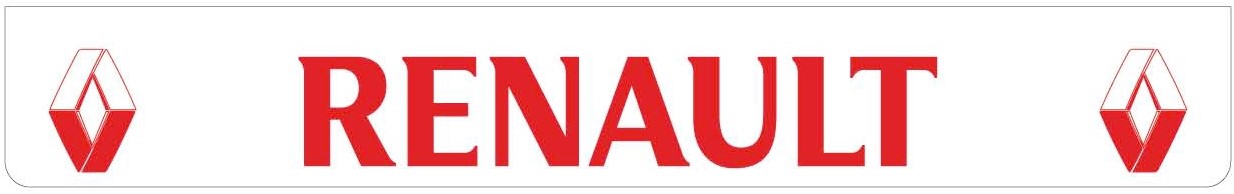 Weißer Schmutzfänger mit rotem Renault-Logo.