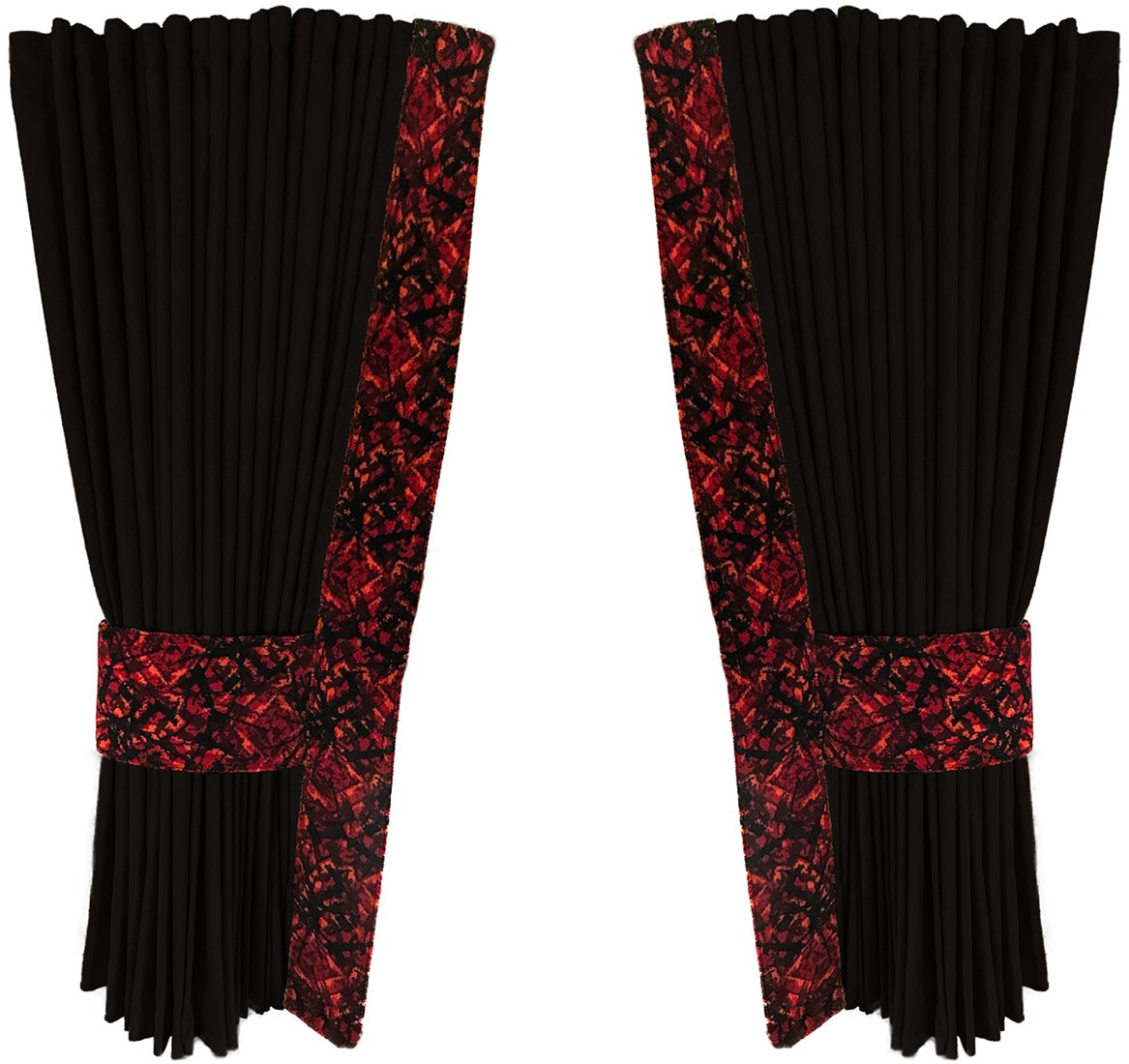 Schwarze 0015 Seitenvorhänge mit rotem Plüsch