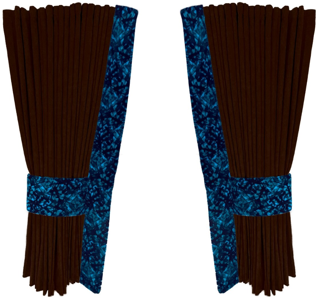 Schokobraune 0020 Seitenvorhänge mit blauem Plüsch