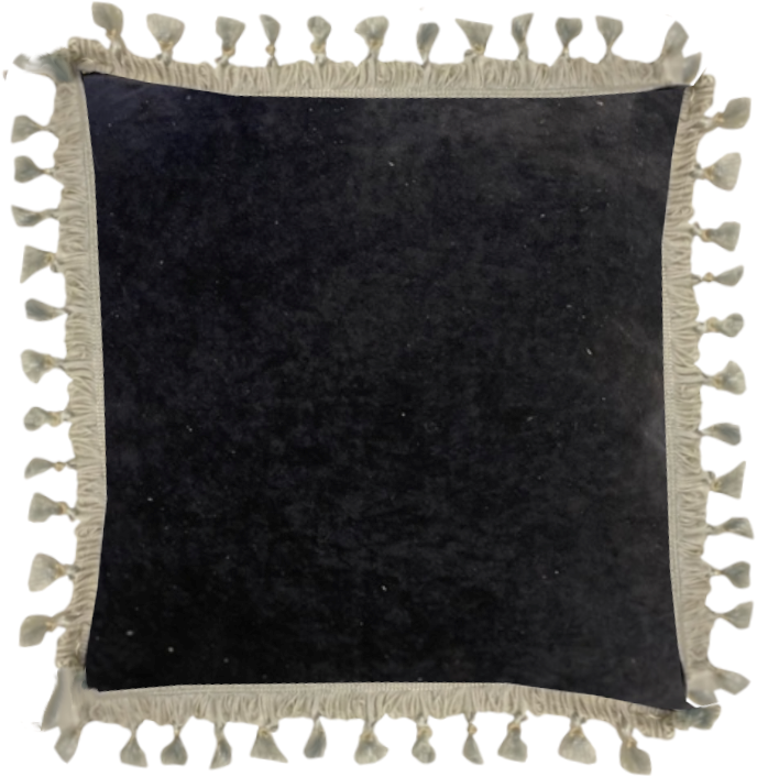 Schwarzes Kissen mit weißen Fransen