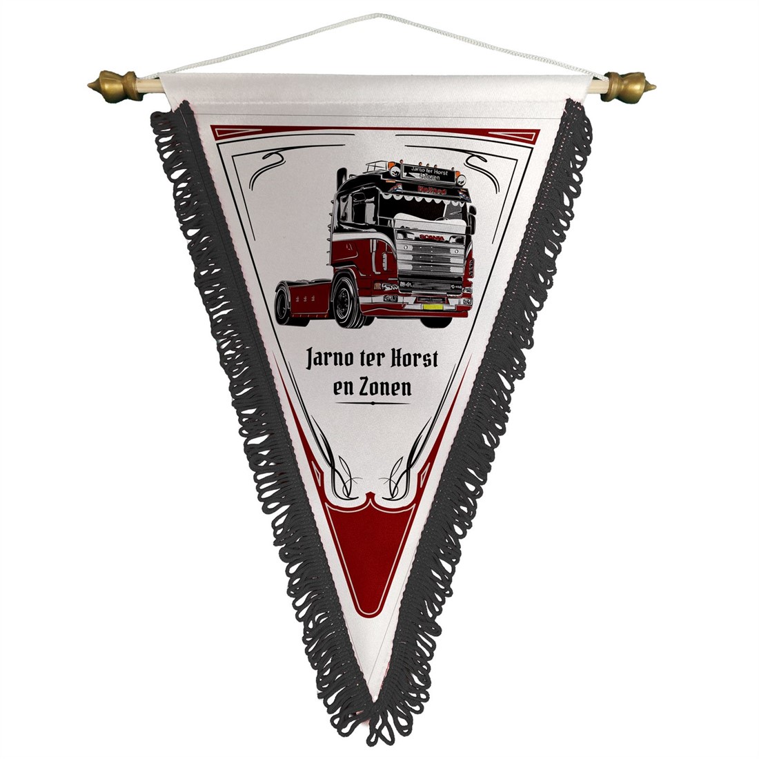 Point vane Jarno ter Horst en Zonen. Both sides transfer print with black ruffle.
