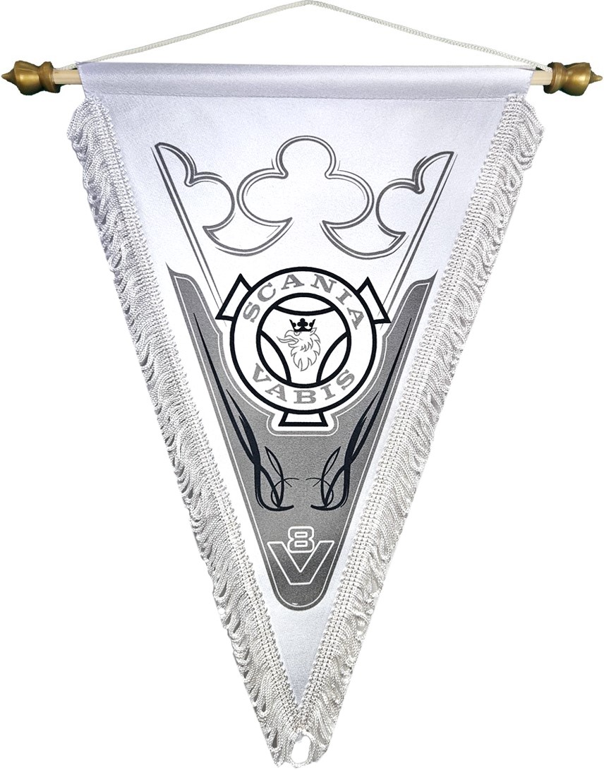 Point vane Scania Vabis V8. Both sides transfer print with white ruffle.