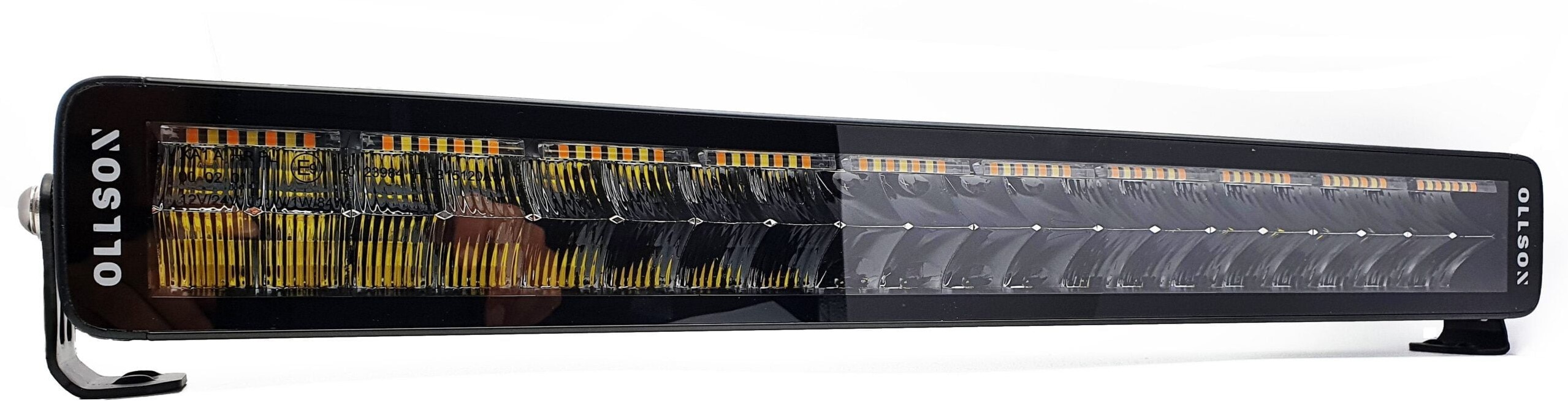 The 21.5 inch/55cm, Ollson 220 Double row Multi-bar is the latest development! equipped with ECE R65 approved orange flash function. R7 approved white side lights and amber side lights.