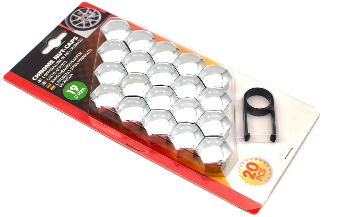 Plastic wheel nut caps chrome 19mm - 20 pieces