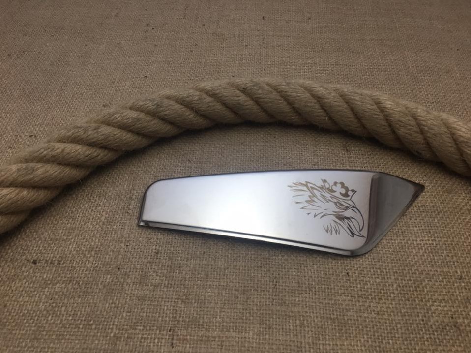 Stainless steel 3D corner plates with Svempa logo Streamline